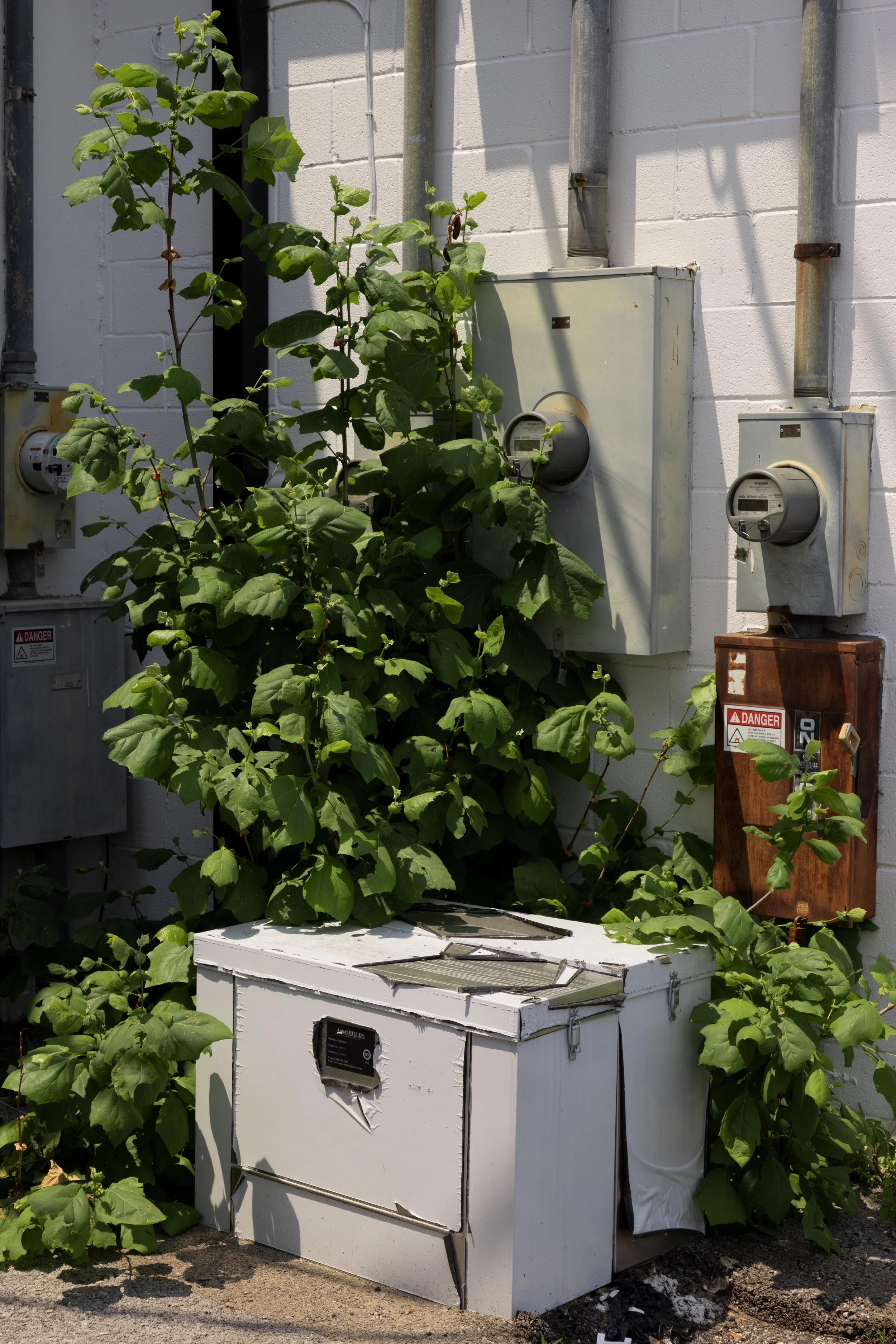 When I show these pictures to people they say it is about architecture, but to me architecture is just what was there at the time. People have created these monoliths of buildings to pack everyone in like sardines so we can sit and work at a desk. Monoliths powered by power lines; that we travel to on interstate highways. Monoliths made from the very materials that will grow to take them over again. How did it come to this? What will become of this?