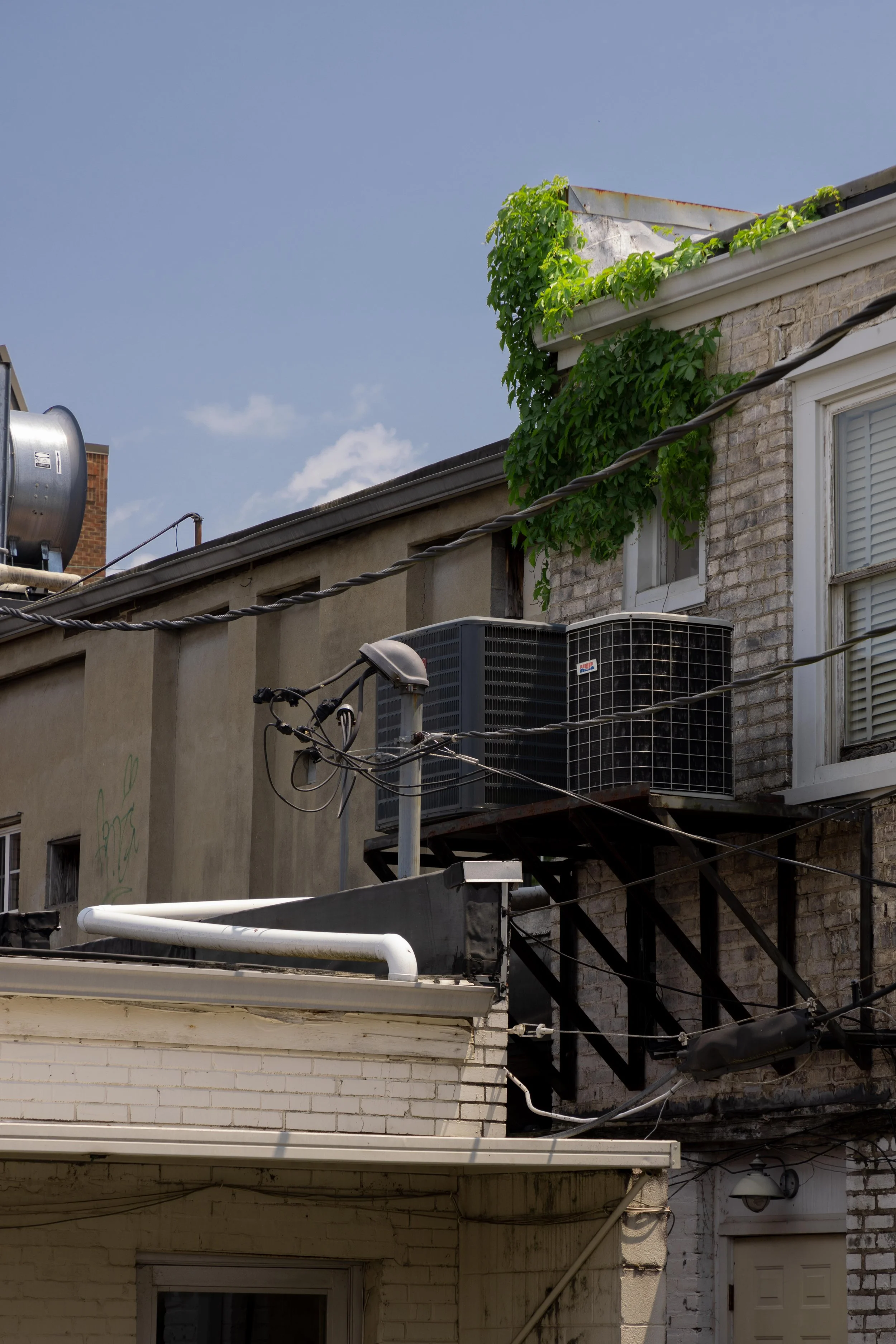 Through traveling around Tennessee this past summer and photographing the things I am drawn to, I have come to notice some repeated motifs in my own work. Certain physical phenomena that I am drawn to visually by the ideas that come from these visuals. Such as the buildings I have seen, and the things around them that help these cities and towns to function. The impermanence of these things began to interest me. I remember going to the squares of various small towns around Tennessee and noticing how quiet and empty they were. I wanted to bring that feeling into images of the big cities, As they one day will be empty and deserted.